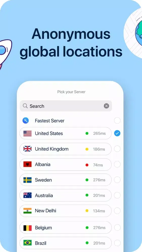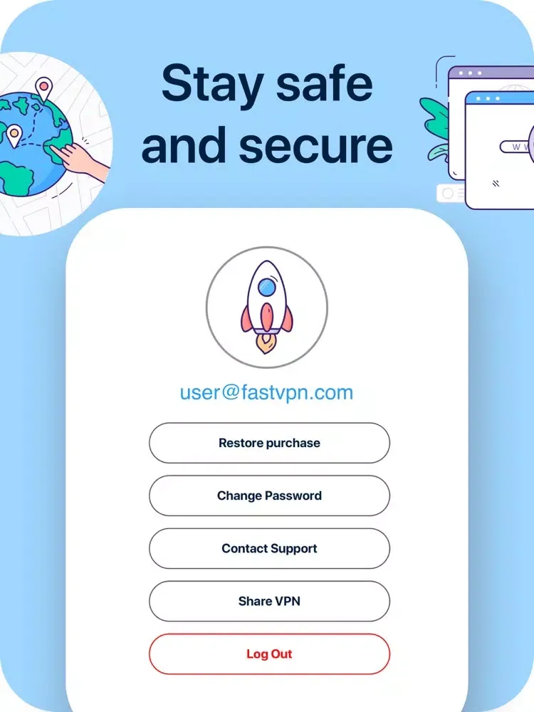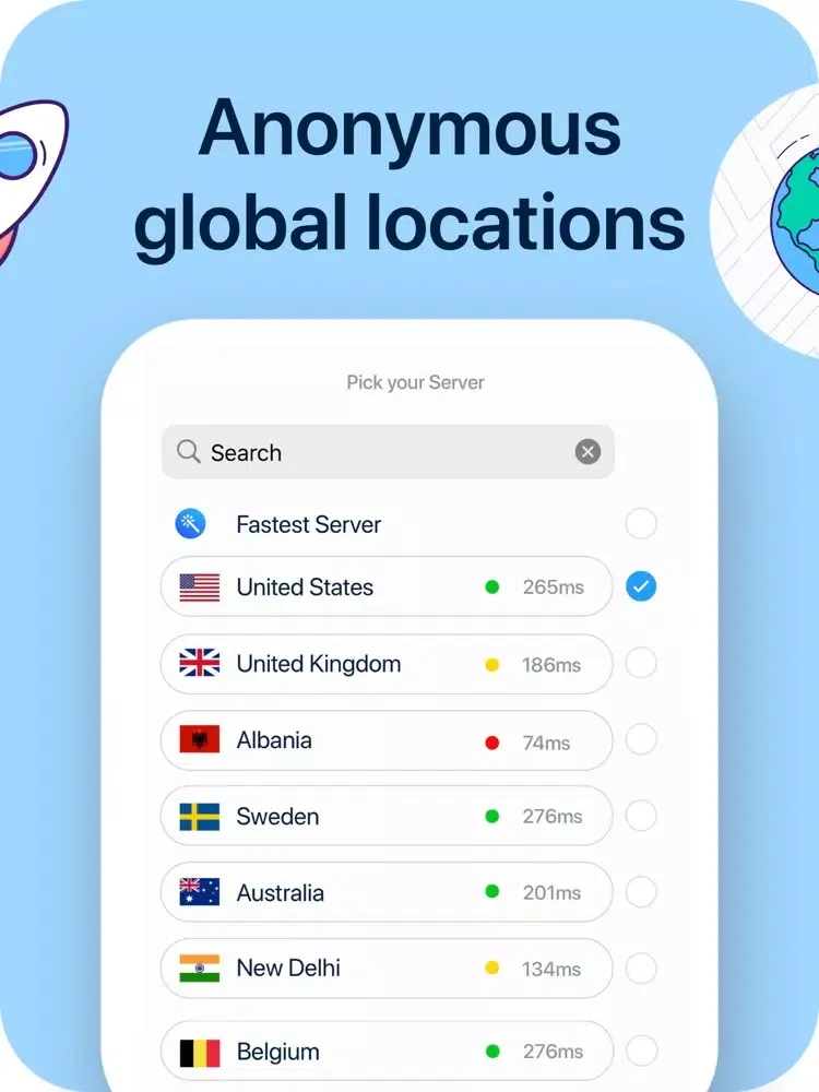 VPN for iPhone Proxy Unlimited is very easy to use and simple to connect VPN service, which provides unlimited bandwidth over virtual private networks. You can protect your privacy, keep you safe from 3rd party tracking while hiding IP, so explore any website without any fear. It’s very easy to surf on the internet as every website is in your reach as our VPN network makes accessible websites very fast. The one-touch VPN solution is easy to use by simply clicking on the connect VPN button and enjoy surfing all over the world without any registration. It’s a very simple app, without any speed limitation, bandwidth limitation, or anything of that kind while using this secure internet VPN.