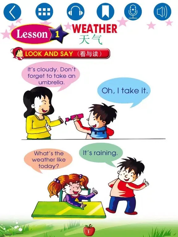 当您使用我们智能书 的有很多效用,比如说:价格与纸书(传统书)比较便宜;买书的时候您们只要一次付钱可以一辈子拥有它而不怕撕破或损失;而且更新或升级最新版的时侯您们可以享受所有权利的而不要付什么钱款, 。。。 我们本书以集成音频与标记每句功能,您想要再听刚刚读句时或任何句话,只要用手触摸那句话它会再发声音完成您的需要。此外, 还有语音录音的功能(您刚阅读的声音)以及一点击于麦克风图标(记录仪图标),点击耳机图标的时候(listen and write – 听力和写作)会出现有很多功能的屏幕帮您听力和重写刚听的句子通过键或手。这是我们的数字技术时代的突破,它会帮助您很多方便在语言学习和阅读。
