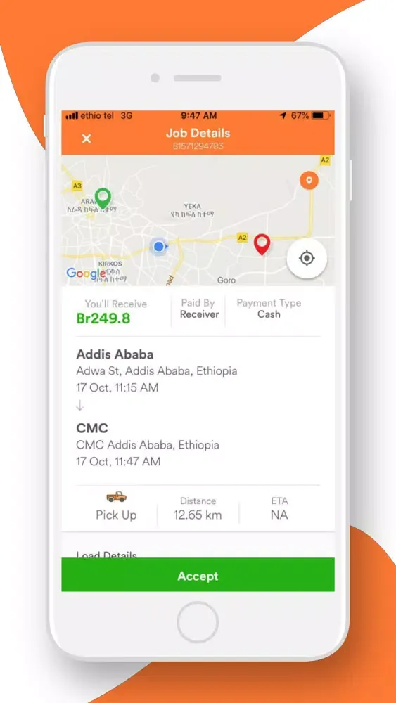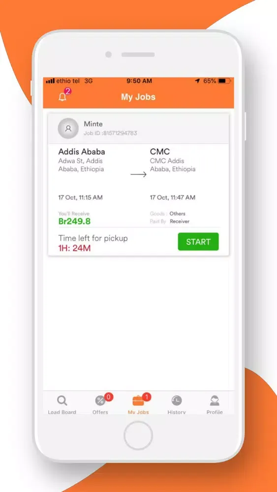 After this the Load is placed in the ‘My Jobs’ page of the carrier app, and the carrier can start the load. The carrier can upload a picture of the load during pick up. Once the carrier starts the load, he can either use google maps or waze for navigation. Once a load is complete, the receiver has to sign on the app, and the carrier can upload a picture of the load on the app. After this an invoice appears and the carrier can submit, after completion of the load.