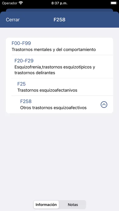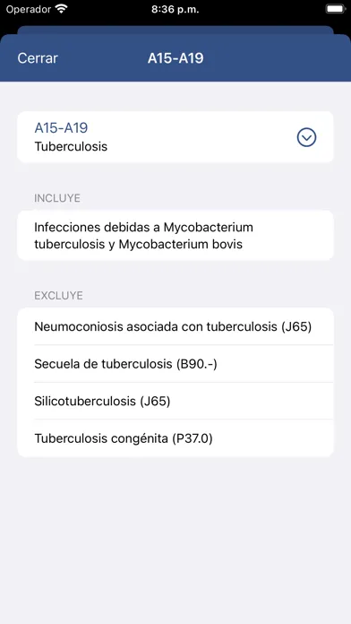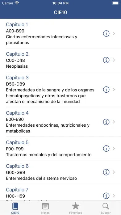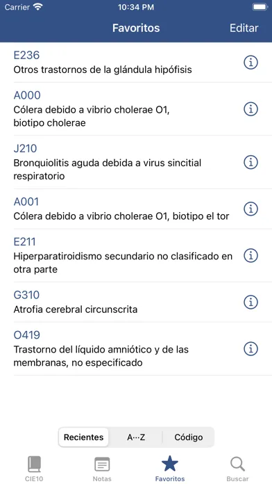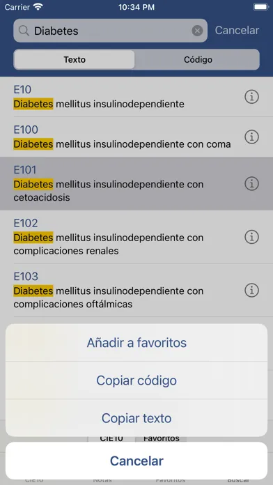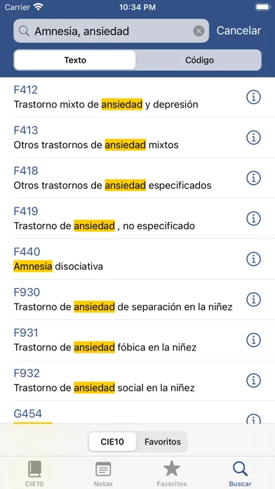 - Búsquedas por la descripción o por el código de la enfermedad; en todo el cie10 o en los favoritos.