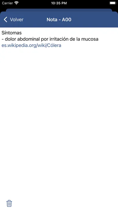 - Añadir notas a los enfermedades pulsando en el botón que aparece al lado derecho de cada uno.
