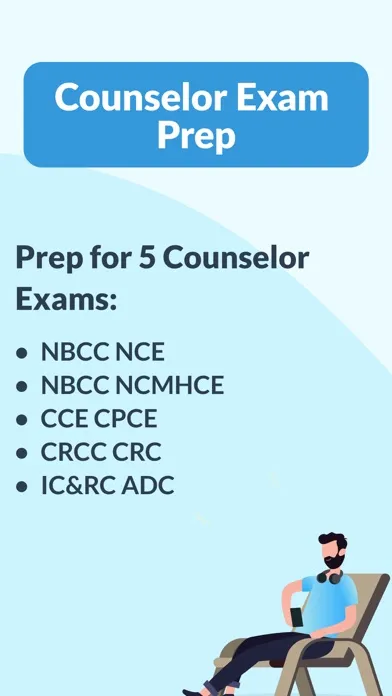 Counselor Prep App is the quickest and most engaging way to prepare for the NCE, NCMHCE, CPCE, CRC, and ADC exams. Study with personalized practice questions, tailored study goals, and detailed explanations aligned with the latest National Board of Certified Counselors® guidelines for 2023 and 2024.