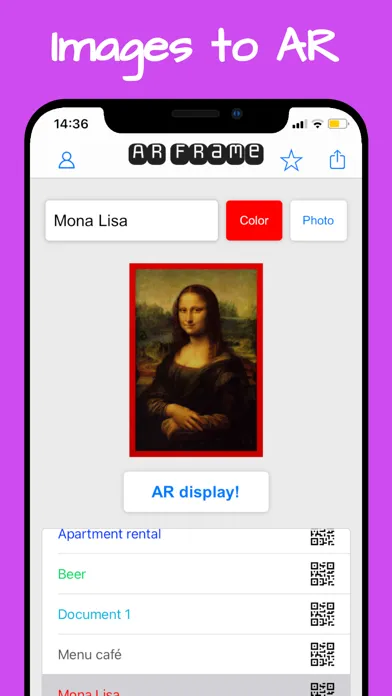 The AR Frame app allows you to create Augmented Reality experiences from photos, images, documents, paintings, menus, and more. A 3D preview of your AR creation is available before starting the AR modeling process.