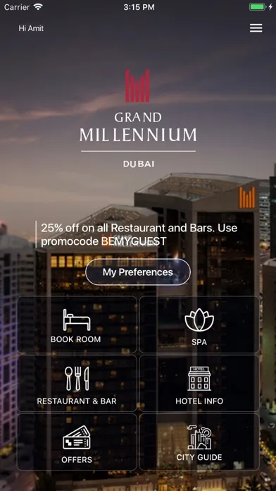As a Grand Millennium E- Concierge app user, you can: