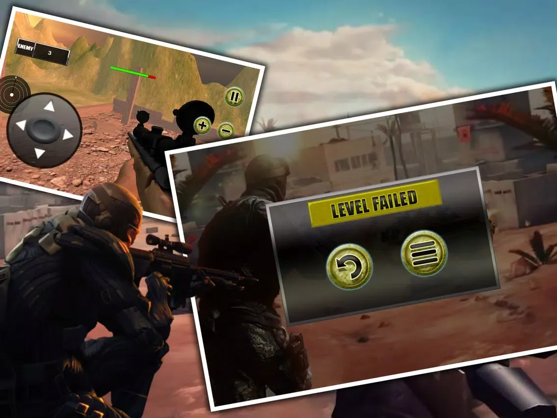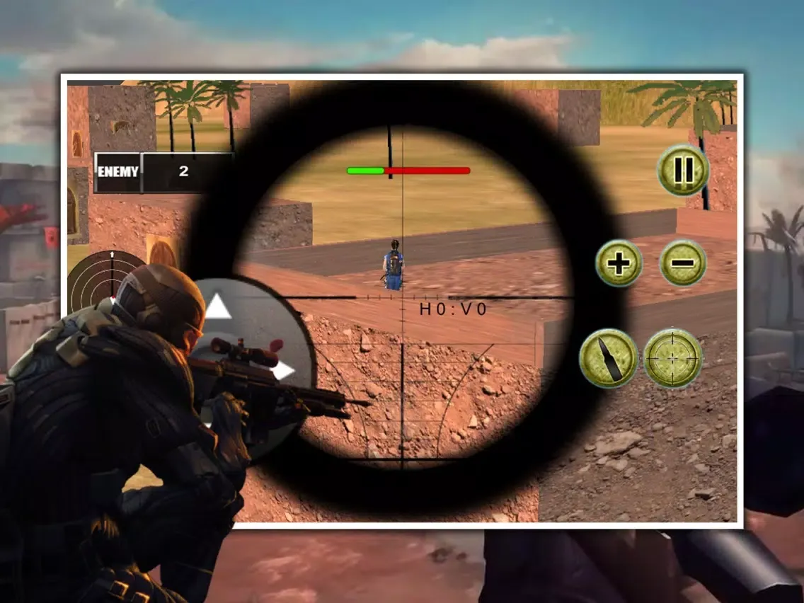 Elite Commando Sniper empowers you to transform your android telephone into a period of war zone and kill every one of your adversaries in the scene view. You are a world class armed force expert rifleman and an unsung legend in this desert field of diversion play. Elite Commando Sniper is a test of your point and shooting abilities. Radar framework will permits you to find the adversaries. Movements will pull in the clients to play this shooting amusement. It gives a due date to the players of this amusement to murder every one of the foes to open next level.