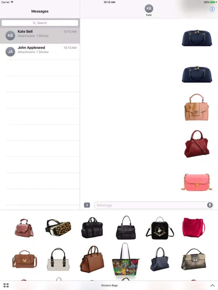 Stickers With Bags is a great collection with the most amazing bags designed for iMessage.