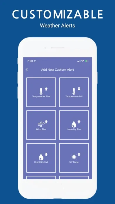Our new app allows you in addition of getting alerted for hazardous weather conditions like (tornadoes, storms, flooding …) and warnings like (freeze, extreme heat…) to set up your own “Custom Alerts” based on weather parameters like temperature, wind, UV Index …