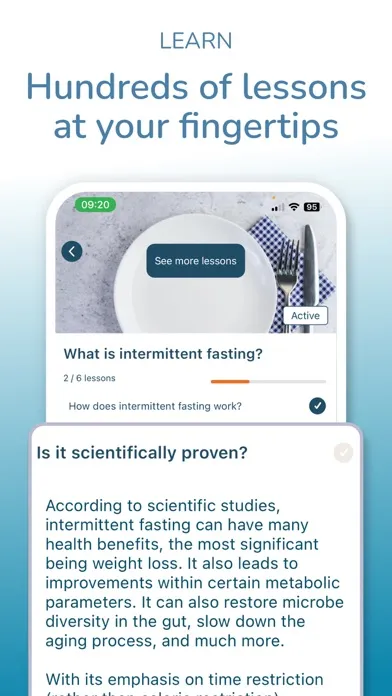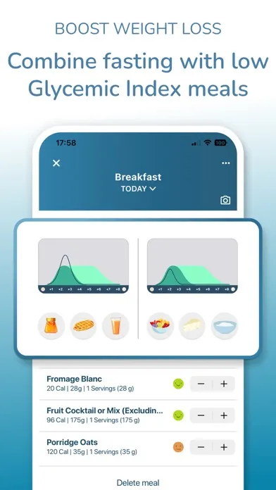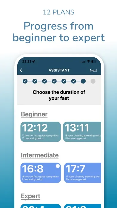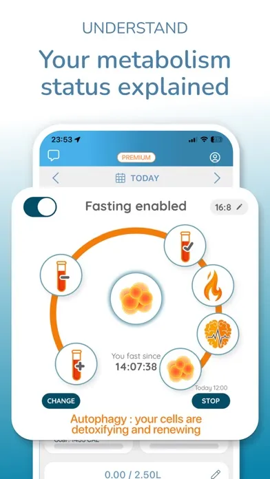 ● DietSensor will help you gradually start intermittent fasting with the 14/10 pattern (14h of fasting followed by 10h during which you will have 2 meals) and progress to longer fasts like the popular 16/8 pattern (16h of fasting) or more, up to 23/1 with one meal a day.