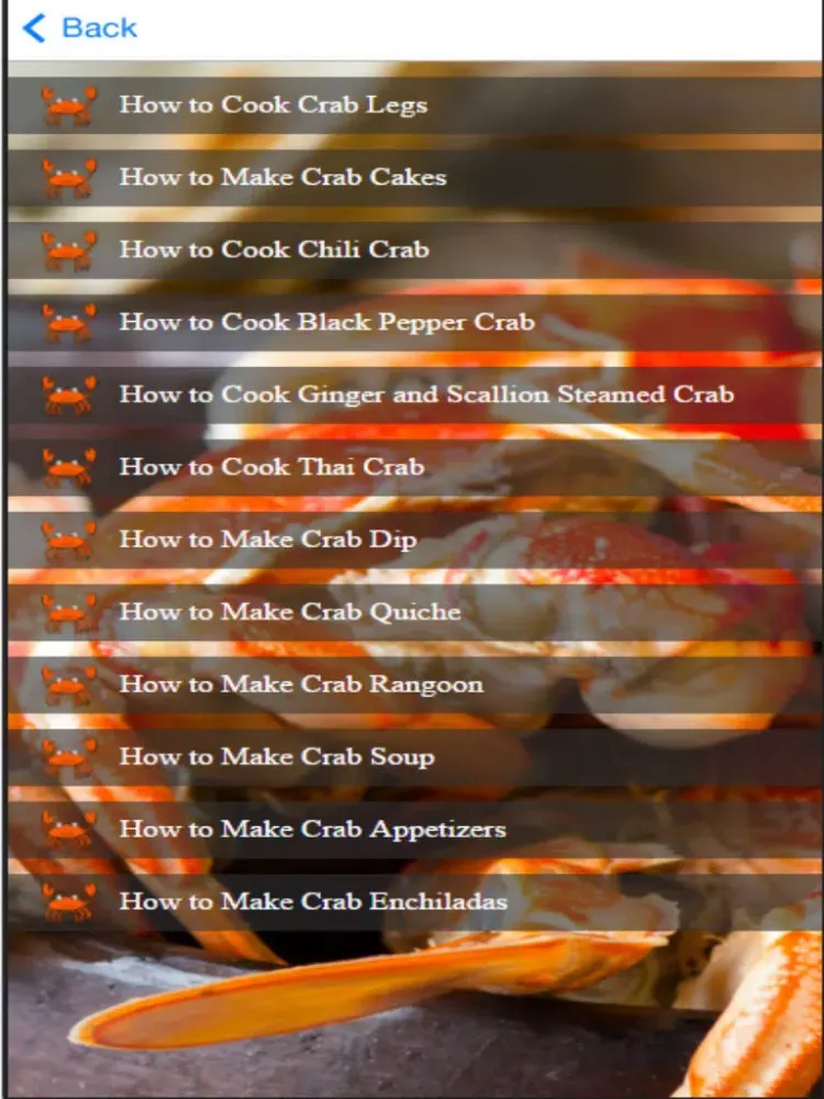 Learn how to cook crab from this app.