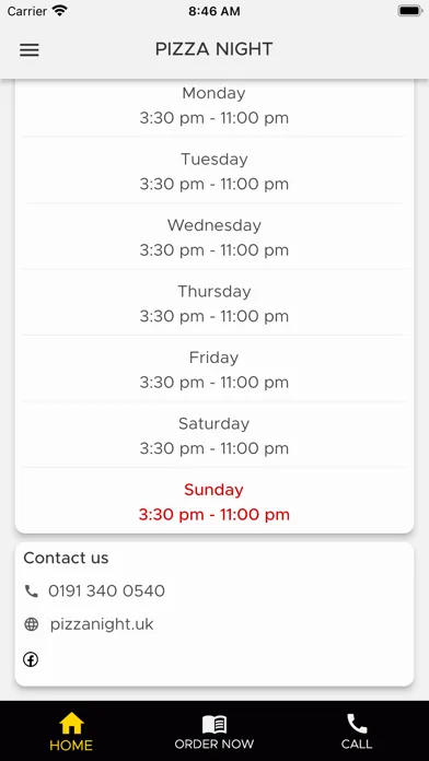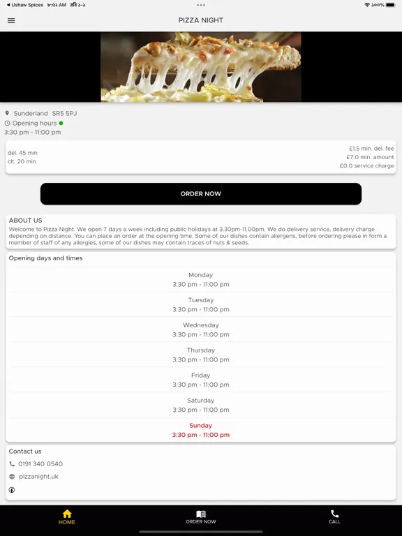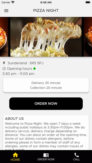 Welcome to Pizza Night. We open 7 days a week including public holidays at 3.30pm-11.00pm. We do delivery service, delivery charge depending on distance. You can place an order at the opening time. Some of our dishes contain allergens, before ordering please in form a member of staff of any allergies, some of our dishes may contain traces of nuts & seeds.