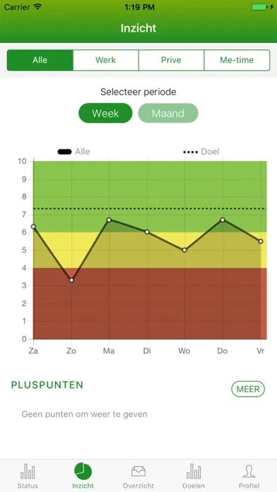 De gebruiker kan doelen voor zichzelf instellen, die hij op een bepaalde tijd bereikt wil hebben. In de app wordt deze doelen, o.a. streefcijfers op energieniveau, langs de ingevulde data getoond, zodat de gebruiker kan zien of hij op de goede weg zit. In de volgende release kan aangegeven worden wat je nodig hebt om je doelen te bereiken en vast te houden. Dit maakt het SMART (Specifiek, Meetbaar, Acceptabel, Realistisch en Tijdsgebonden) voor de gebruiker.
