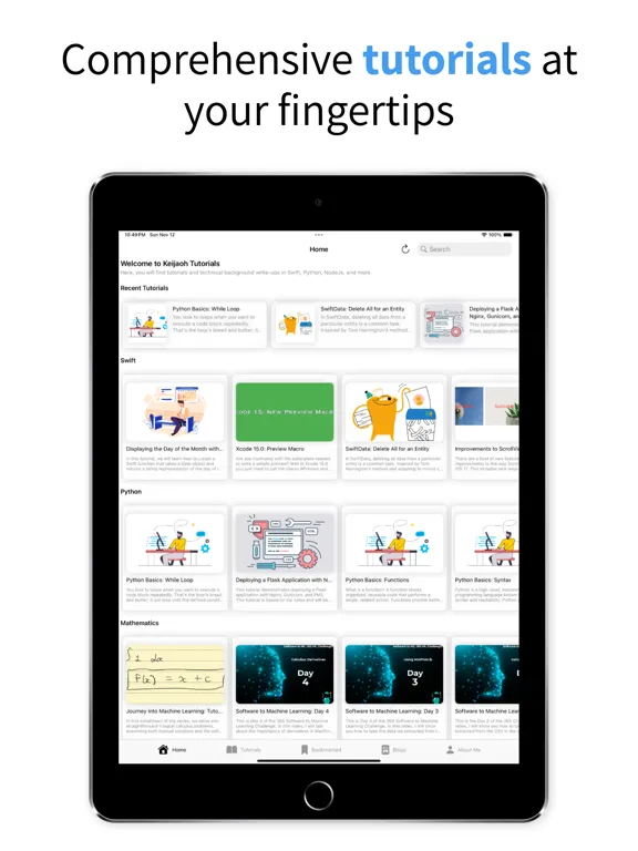 Introducing our comprehensive mobile app, designed to provide you with an immersive learning experience across various topics. Dive into our expert tutorials on Swift, SwiftUI, backend technologies, Calculus, and more, all tailored to help you master these subjects with ease. In addition to our educational content, you'll find insightful blogs covering Business, Computer Science, and even in-depth discussions on academic papers authored by our team. Enhance your knowledge and stay updated with our all-in-one app.