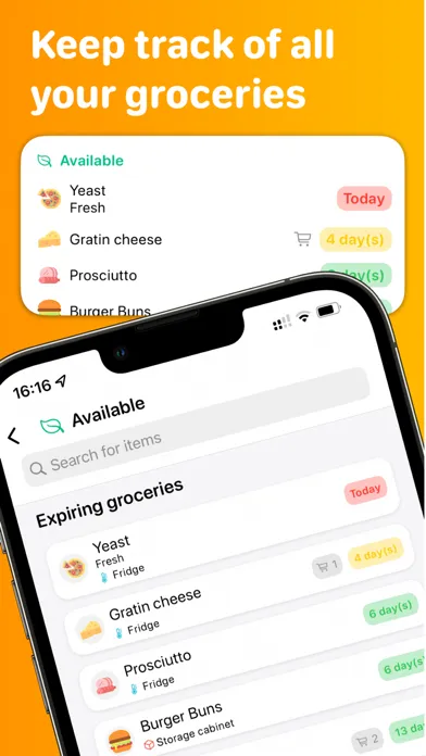 Smart lists make it possible to get an overview of soon expiring groceries. Before it gets to that point, however, reminders can be activated to notify you in time to use up your food before it expires. Other features like widgets help you keep track of everything.