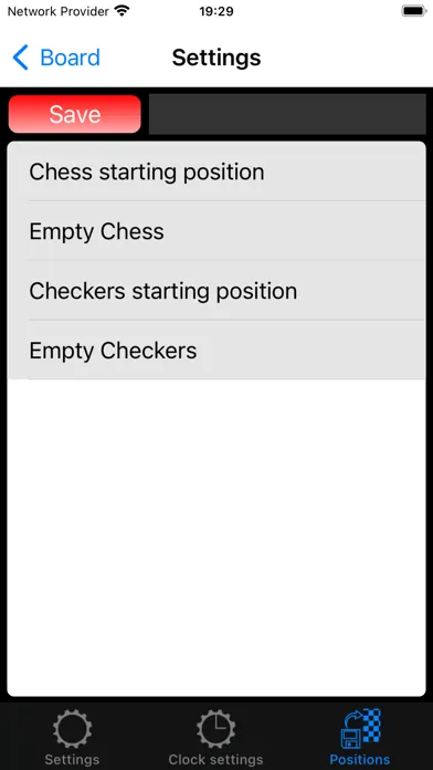 • Save/load positions for later use, or delete them when you don't need them anymore (swipe over them). Starting positions for chess and checkers are available.