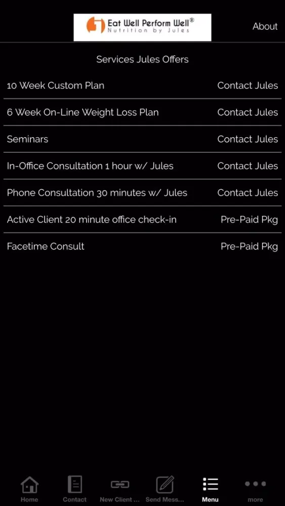 Jules understands the nutritional challenges facing both athletes and motivated adults in the workplace. Email Jules for a consultation to find out how nutrition can have a positive impact on your performance on and off the field or in and out of the boardroom. She offers 1:1 personalized plans to help the athlete at any level outperform the competition, or to help those in the corporate world and motivated adults attain their desired goals. Remember - you must "Eat Well to Perform Well".