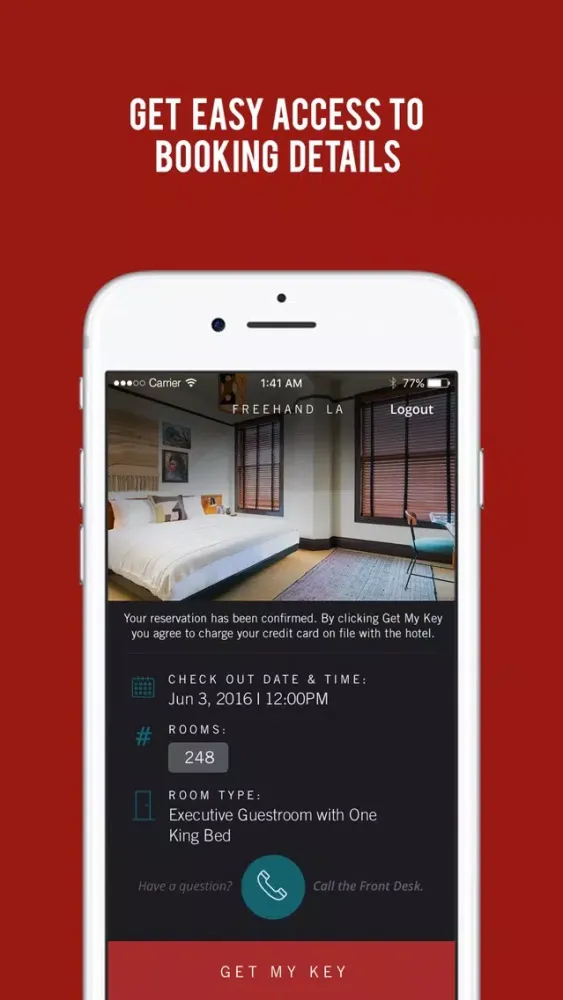 • “Front desk help” at your finger tip built right into the app. No more hunting for phone numbers in dresser, drawers etc.