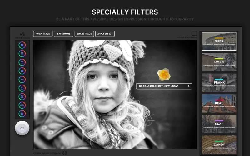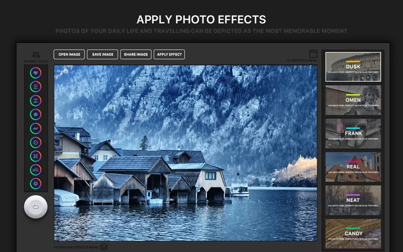 Filter Lens Party provides 415 filter effects beloved by professional photographers, all conveniently packed in 6 different themes. Filter Lens Party themes vary from the feel of film camera to the unique sets of classy moods or fun creativity, It's time to make things look different!
