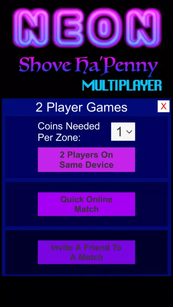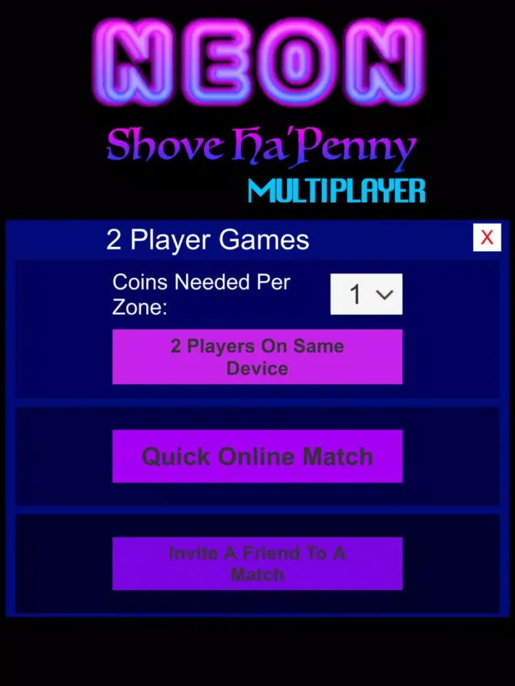 So challenge the world's high scores, beat your mates, or just pass some time with the addictive game of skill Neon Shove Ha'penny Multiplayer!