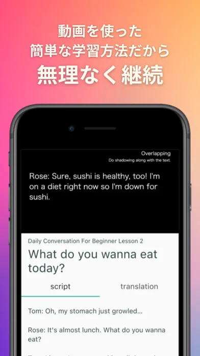 たくさんの研究結果により効果が実証されている「シャドーイング」という学習手法を用いて、誰でも簡単に、かつ、効果的に学習できるアプリです。