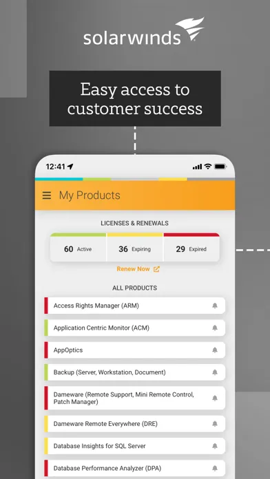 Need help on the go? SolarWinds® Customer Success mobile application is an extension of Solarwinds Customer Portal that gives you quick access to account information and product tools.