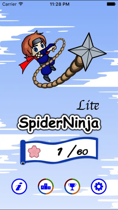 This is an exciting puzzle action game, featuring a Japanese ninja and his grappling hook. Make full use of the grappling hook like spider silk to make the ninja's way through, and lead him to the goal by collecting cherry blossoms on all stages.