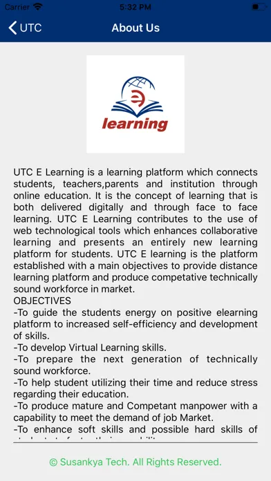 UTC E-Learning is a learning platform which connects students, teachers, parents and institutions through online education. It is the concept of learning that is both delivered digitally and through face to face learning. UTC E-Learning contributes to the use of web technological tools which enhance collaborative learning and present an entirely new learning platform for students. UTC E-Learning is the platform established with the main objective of providing distance learning and produce competitive and technically sound workforce in market.