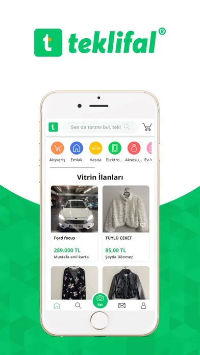 Ücretsiz uygulamamız sayesinde ihtiyacınız olmayan şeyleri satmayı ve çevrenizde satılan harika ürünlere ulaşmanız 2. El Satış Pazar yeri olan Teklifal'da kolaylaştırdık. Satılık bir ürün yayınlamak artık fotoğraf çekmek kadar basit çünkü türünün tek örneği olan Teklifal.com uygulaması yapay zeka ve görüntü tanımlama teknolojisi sayesinde ürüne otomatik başlık ekleyip onu ilgili kategoriye yerleştirebilir.