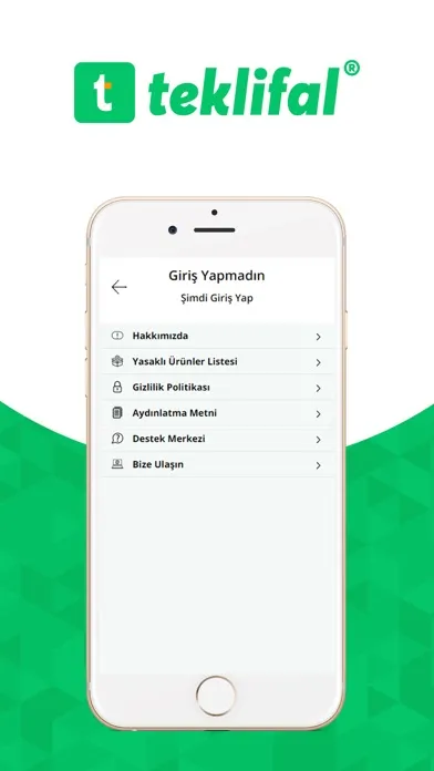 Milyonlarca kullanıcıya ulaşma potansiyeliniz ile Teklifal uygulaması yakın çevrede ve geniş ölçekte alışveriş yapmanızı sağlayan en büyük ve en hızlı büyüyen uygulama. Çok yakın bir süreçte en popüler uygulamalar arasında yerini alacak olan 2. el pazar yeri uygulaması olan Teklifal'da kullanıcılar elektronikten ayakkabıya, çantadan aksesuara kadar avantajlı fiyatlarla her şeyi alıp satabiliyor. İade garantisi ile binlerce marka ve ürün sadece Teklifal.com'da. Üstelik, satış ortaklığı politikasıyla sosyalleşme ve kazanç fırsatları da sunulmaktadır.