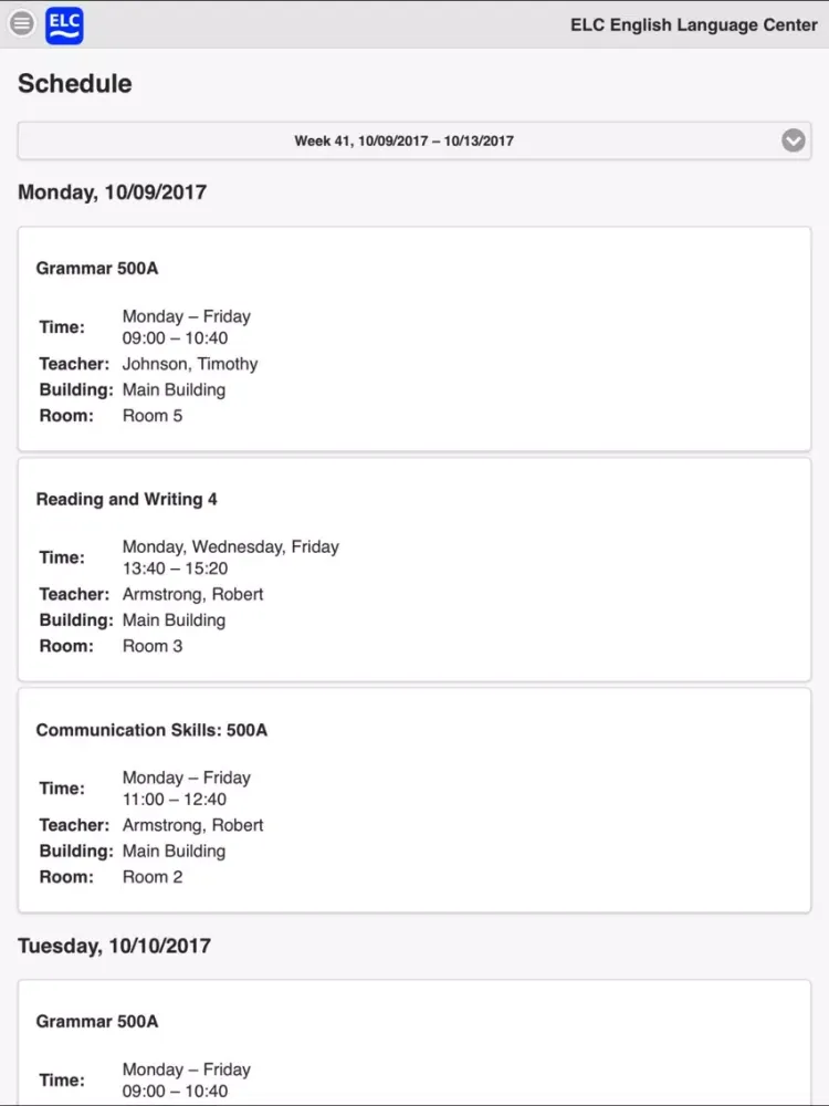 App allows you to check your daily schedule, attendance, housing details plus all other news about ELC.
