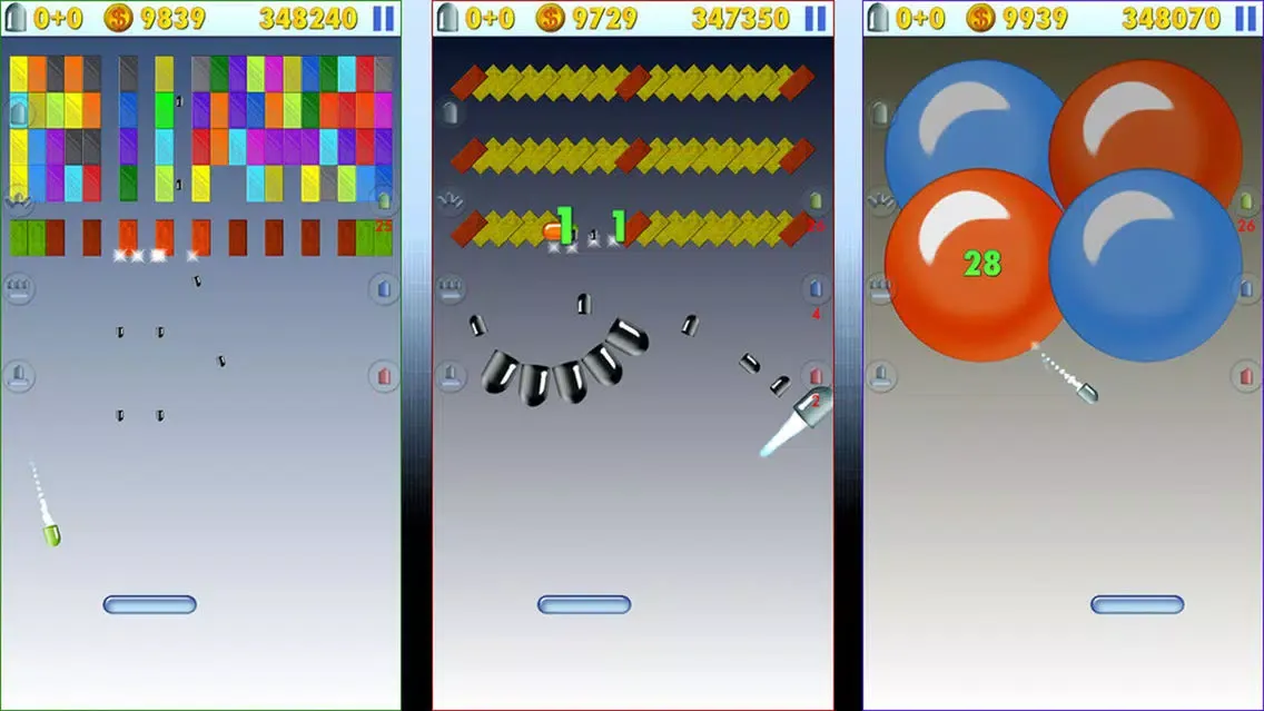 - baby bullet, giant bullet, clone bullet, cannon, vulcan, missile