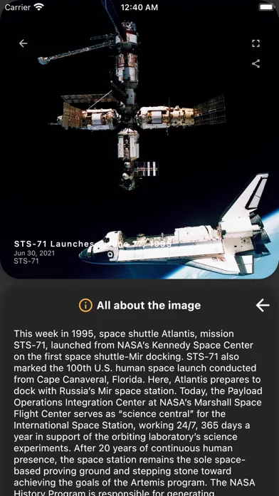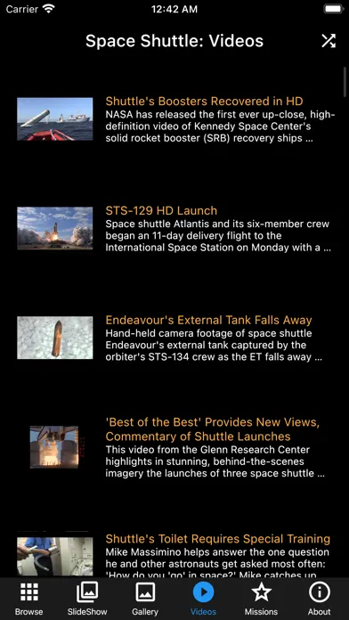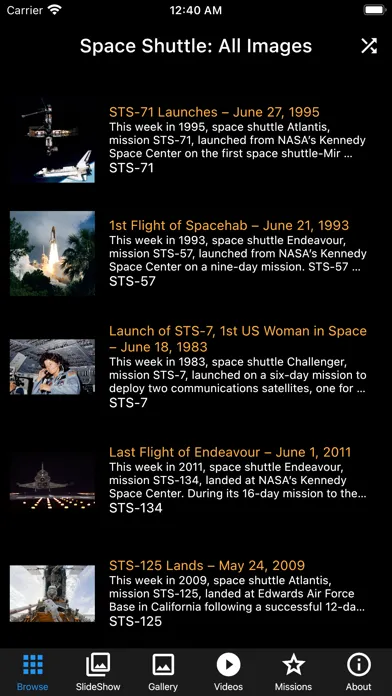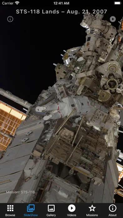 You will have a nice user experience and obtain detailed information while navigating through the beautiful photos taken by the Space Shuttle Missions.