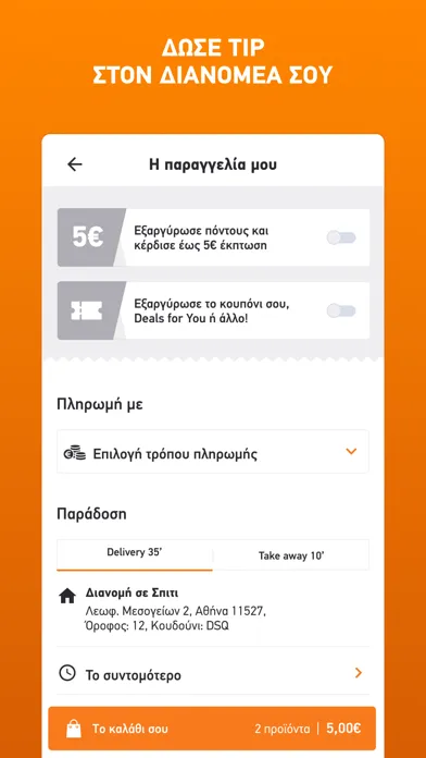 - Να επιλέξεις ανέπαφη συναλλαγή - Να αφήσεις online το tip σου στον διανομέα