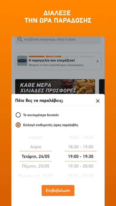 - Να προγραμματίσεις την ώρα και την τοποθεσία παράδοσης κάθε παραγγελίας