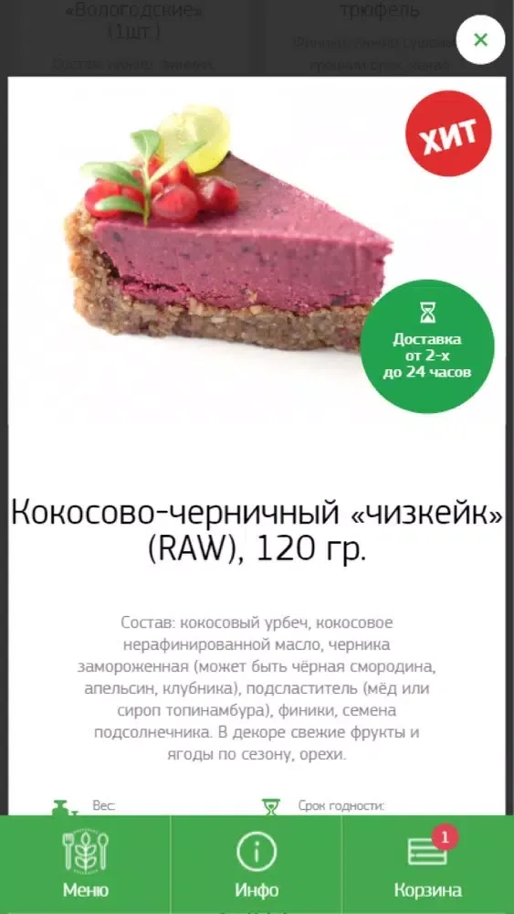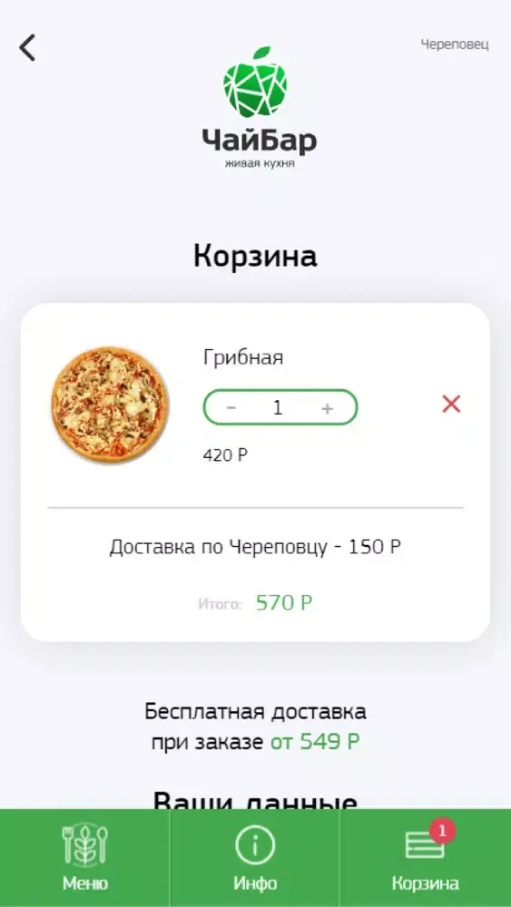Приложение для быстрого заказа здоровой и полезной еды с доставкой по Череповцу