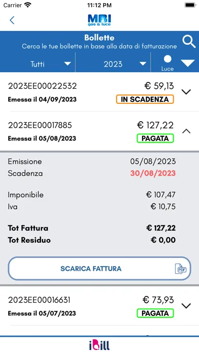 - Monitorare lo storico dei pagamenti delle tue bollette e scoprire tutte le modalità con cui puoi pagare.