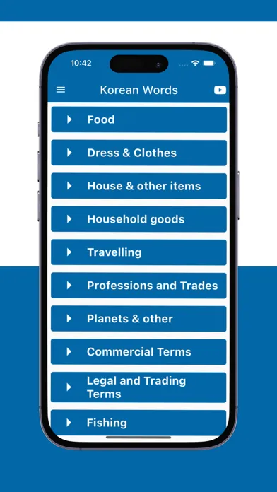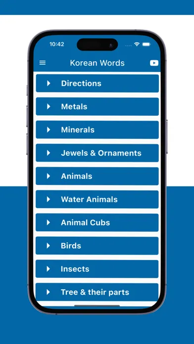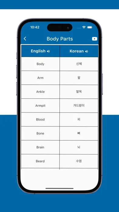 Extensive Word Database: Gain access to a vast collection of Korean words spanning diverse categories such as daily life, travel, cuisine, emotions, and more.
