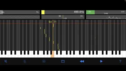 ● Tap the keyboard to hear the pitch, and the pitch name and MIDI note number are displayed on the keyboard where the pitch of the detected sound shines.