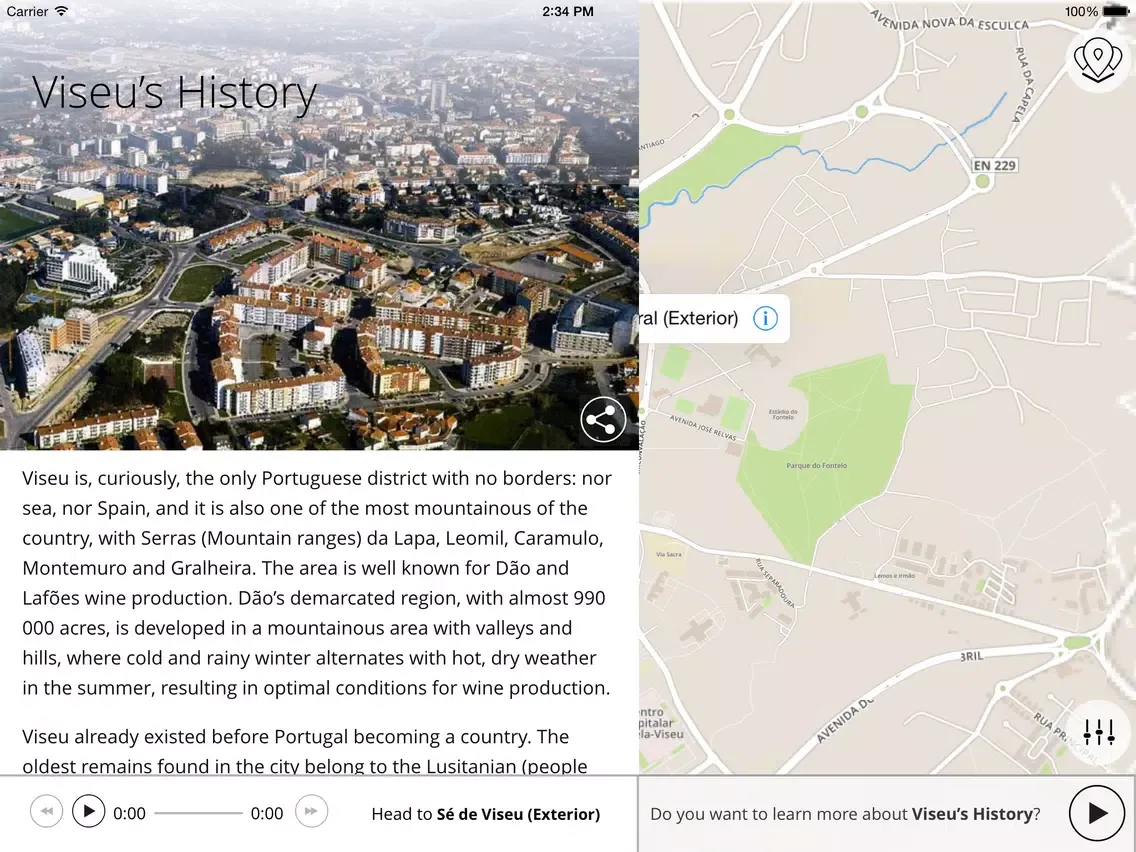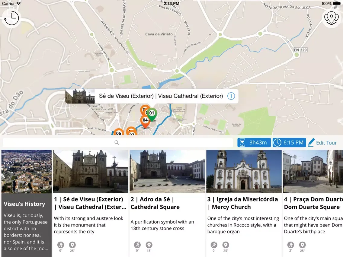 JiTT doesn’t just tell a city’s stories through time, but takes into consideration your own available time. Whether you’re on a business trip with minimal free time to take in the historical sights, or on a short city break and want to make the most of your trip, JiTT will create a route to match your available time, and interests. If you’ve already seen one of the sights, simply delete it from the route; or if you want to see a particular monument, add it in. The app will recalculate your route and show you the sights of Viseu!