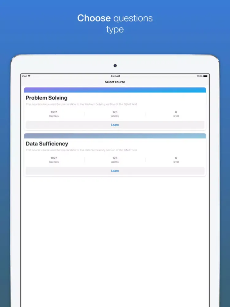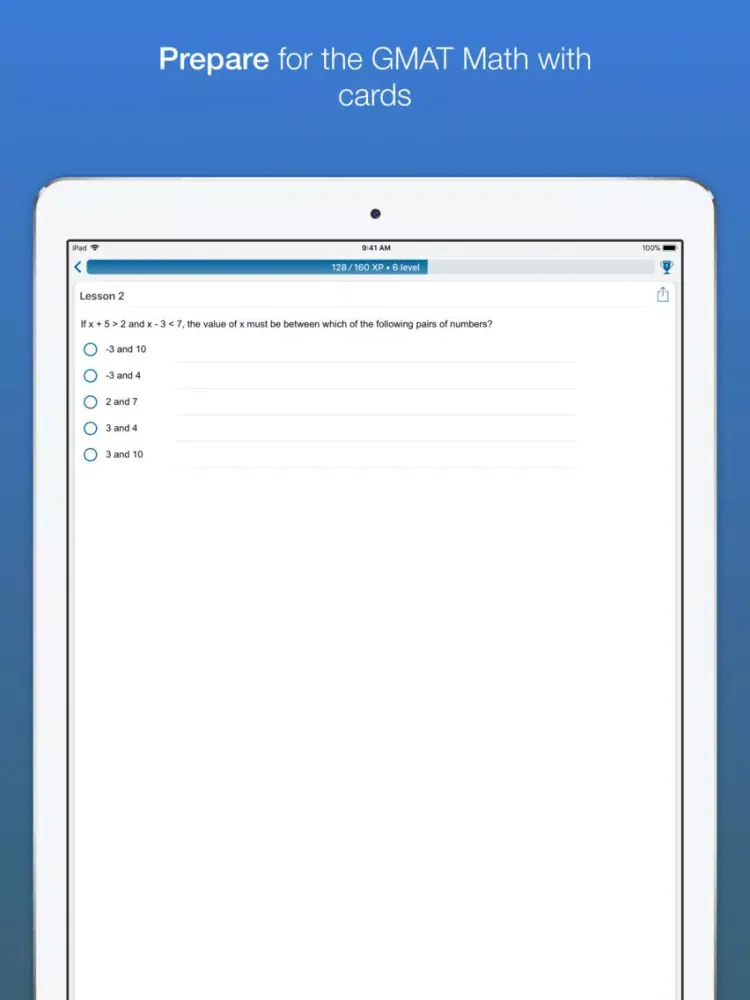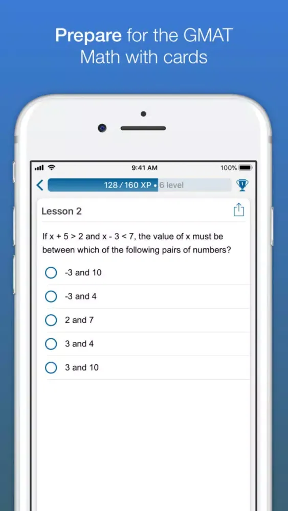 This app can be used for preparation for Problem Solving and Data Sufficiency questions in the Quantitative sections of the GMAT test. Problem solving questions measure your ability to solve numerical problems, interpret graphical data, and evaluate information.