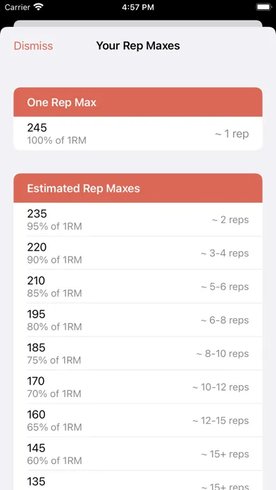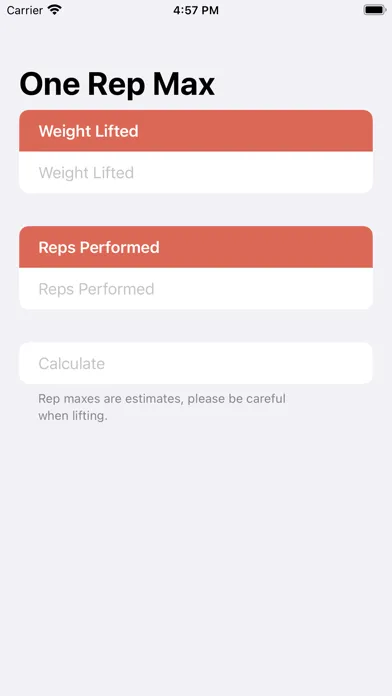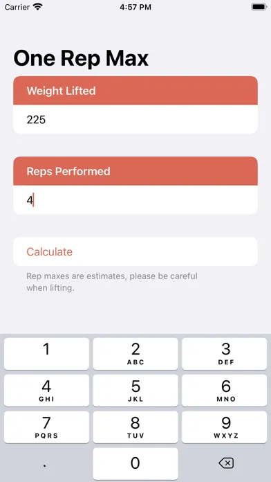 Enter the weight you lifted and the reps you performed and the app will show you your one-rep max and the different reps you should be able to perform at different weights.