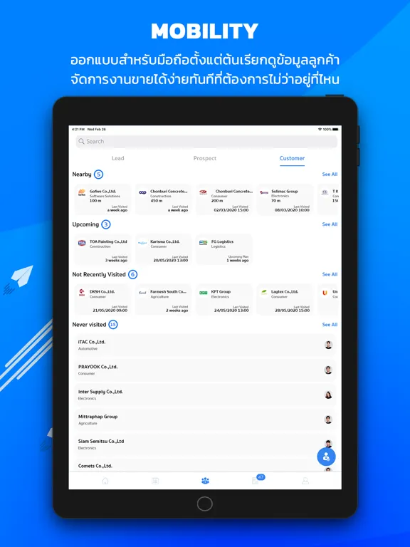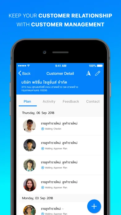 - จัดการกิจกรรมการพบลูกค้าพร้อม check-in/checkout ได้ที่หน้างาน