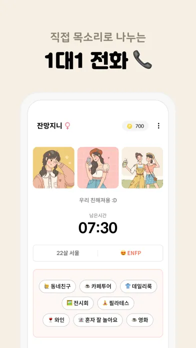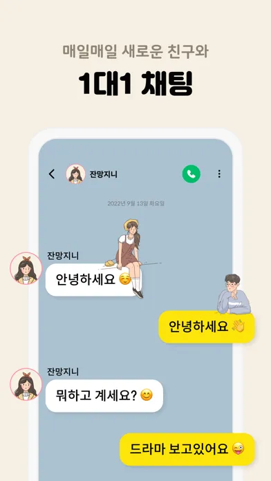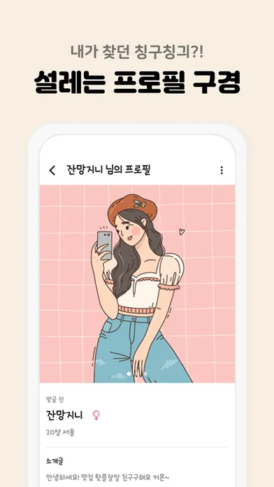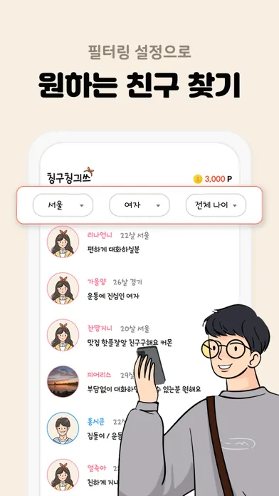 맞춤 필터링으로 원하는 친구를 찾고, 1대1 대화로 친해져보세요!