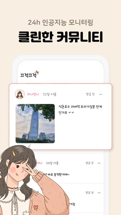 24시간 인공지능 모니터링으로 커뮤니티가 클린하게 유지됩니다.