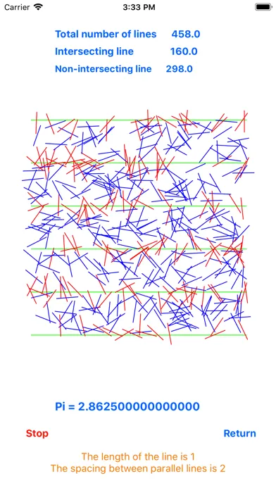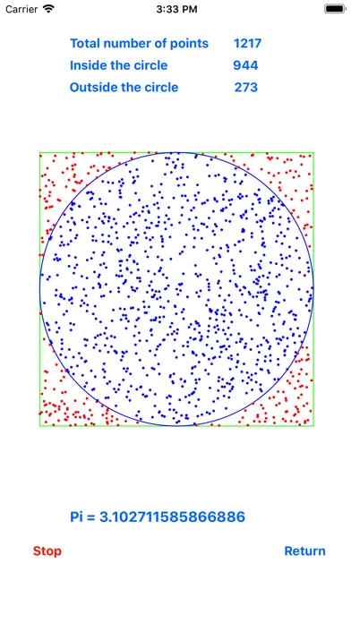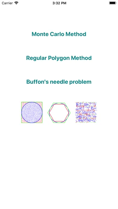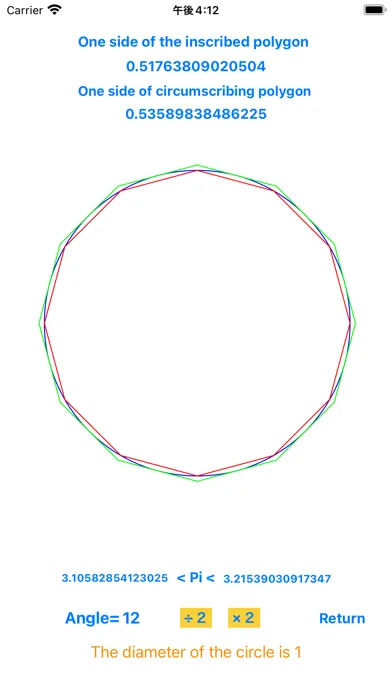 Using the area of the square and the area of the inscribed circle, the method of finding π in the Monte Carlo simulation, the method of using the Length of side of regular polygon inscribed and circumscribed in the circle, the method of Buffon's needle (also Monte Carlo simulation), each is displayed by this application. The data to be displayed is calculated sequentially by the CPU, and in the method using the regular polygon, we calculate it by using the Pythagorean theorem repeatedly. Each calculation method is on the internet. It is interesting that the numerical value converges to π.