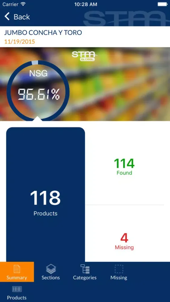 Aplicación que brinda información sobre los datos de las ultimas auditorias realizadas por STM en los distintos puntos de venta, la información se presenta a nivel local, por sección, categoría y producto.