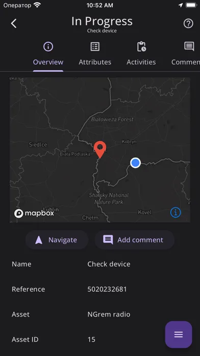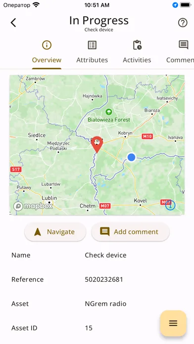 It also allows to add extra details to the tickets, such as comments and attachments. It is possible to locate and navigate to the asset demanding the maintenance.