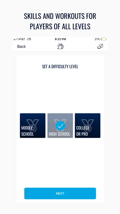 Skills & workouts are broken down into middle school, high school, college and pro levels.