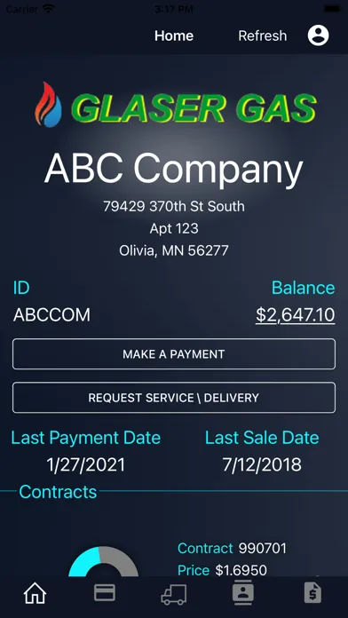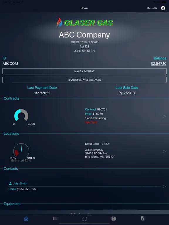 Information at your fingertips! This app gives you direct access to your account balance, location and contract information. It also gives you the ability to store and process payment and request service work and deliveries directly through the app.