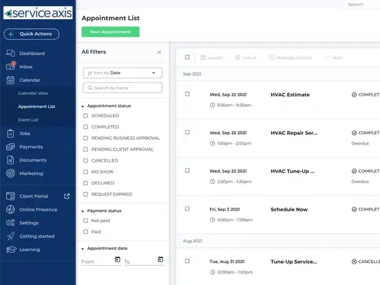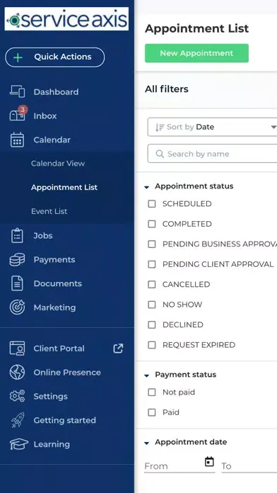 With Service Axis, you can also provide a seamless customer experience, allowing leads and clients to book appointments, pay for services, communicate with your business, request reviews, and share documents via your website, Facebook page, or directly from Google search.