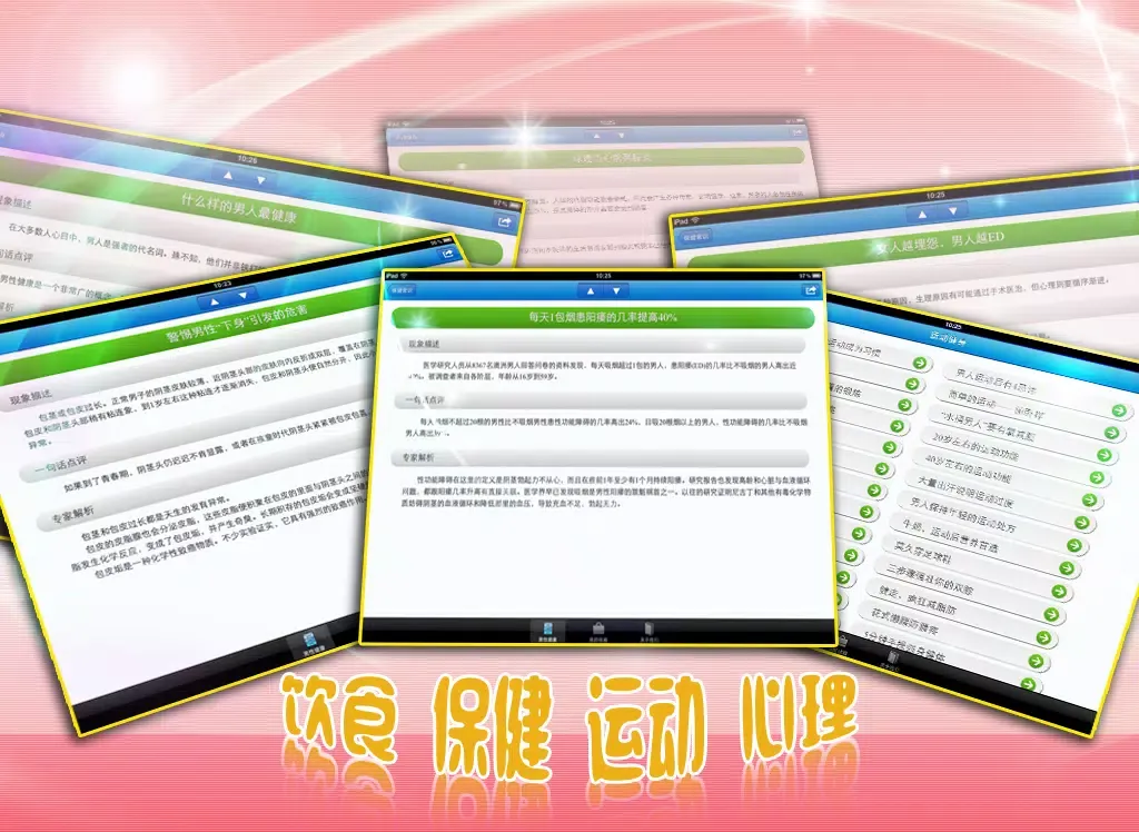 如果你没有时间和精力去阅读男性养生的书籍,不妨下载这款直观易懂、内容丰富的《男性健康百科全书》。